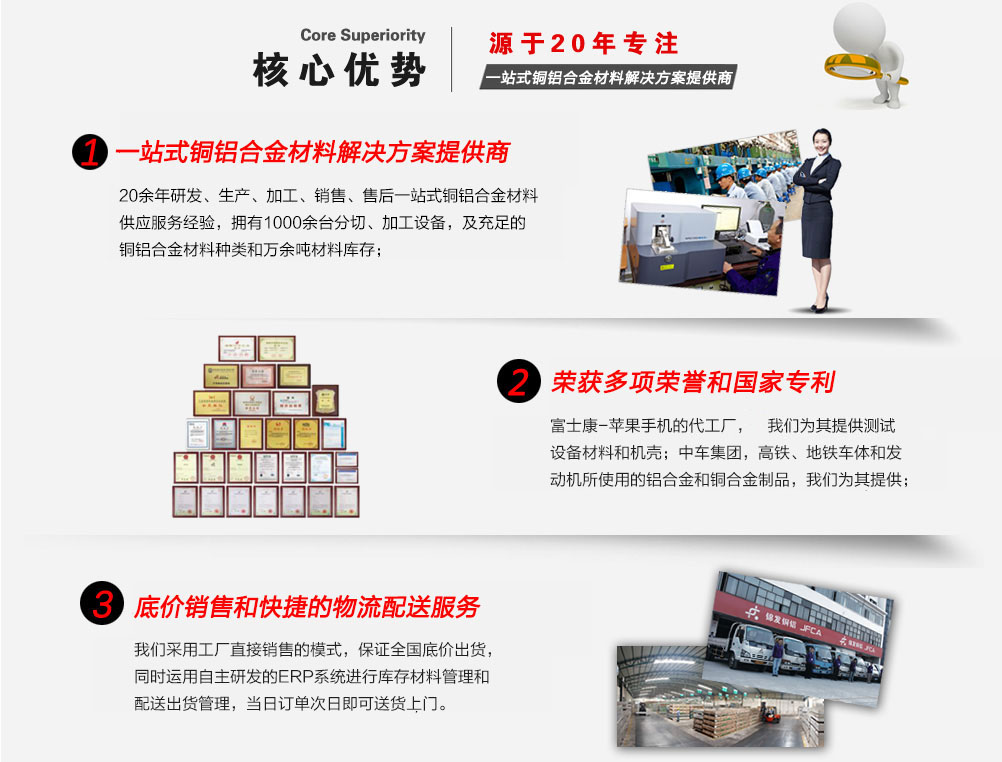 深圳市錦發(fā)銅鋁有限公司成立于1998年,注冊資金1億元人民幣,是一家國家高新技術企業(yè),榮獲廣東省著名商標稱號。總部及生產(chǎn)基地位于深圳寶安松崗,占地面積3萬多平方。公司成立以來,一直專注于鋁材、銅材等合金材料的研發(fā)、生產(chǎn)加工及銷售。倉儲上萬噸銅鋁合金材料,迅速響應客戶需求。